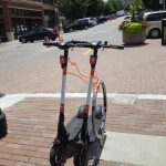 Shared e-scooters are giving local active transportation a boost! The novelty and convenience of these new mobility devices is drawing people out of the isolation of a personal vehicle and into the public sphere. They are creating more demand for bike lanes (KCMO doesn’t allow scootering on the sidewalk) and more demand for bike racks at businesses, government buildings, and tourist destinations. In response, the City of KCMO has installed two “micro-mobility parking hubs” downtown, and is preparing to add more in other popular areas.